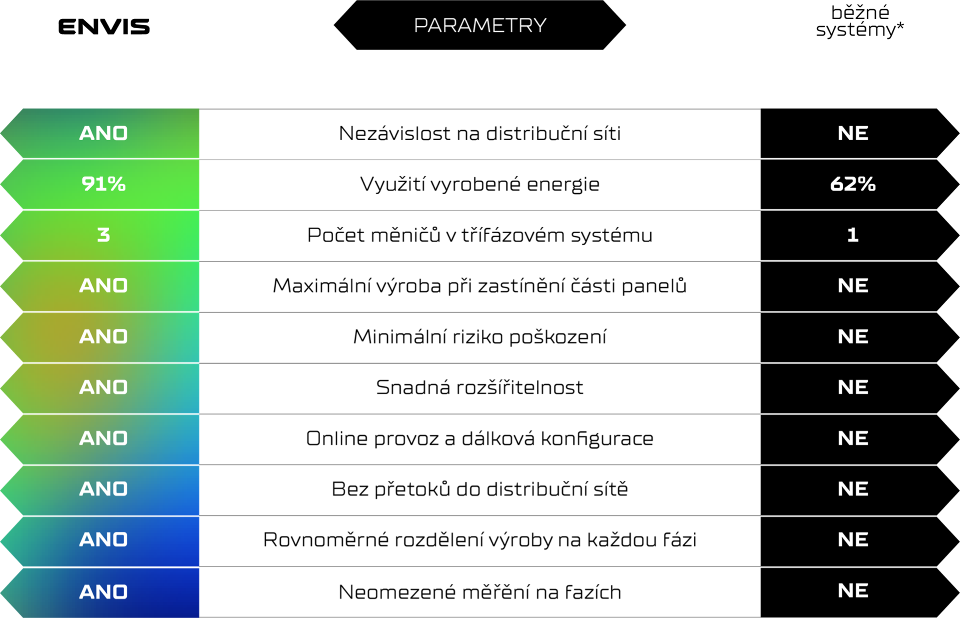 Úspora, energetická soběstačnost, ohleduplný přístup k životnímu prostředí. Je jedno, které téma Vámi právě teď rezonuje nejvíce. Solární panely na střeše již dávno nejsou známkou nadčasovosti, moderny a bohatého zázemí investora. Fotovoltaické elektrárny jsou novým standardem, který přivede do Vaší domácnosti teplo, úsporu a větší míru nezávislosti. Vydejte se na cestu ke svému novému standardu bez obav s ENVIS energy vision.